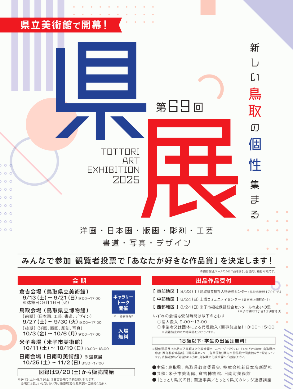 展示作品の中から観覧者による好きな作品投票を鳥取県立美術館・鳥取県立博物館・米子市美術館において各展示会期中に実施します。観覧者投票により「あなたが好きな作品賞」を決定します!!是非ご参加ください。
